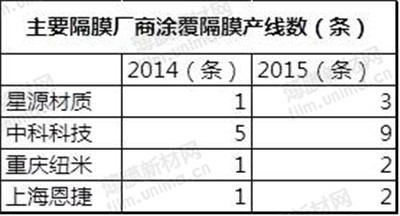 在2015年,涂覆隔膜在动力电池上的占比大幅上升。