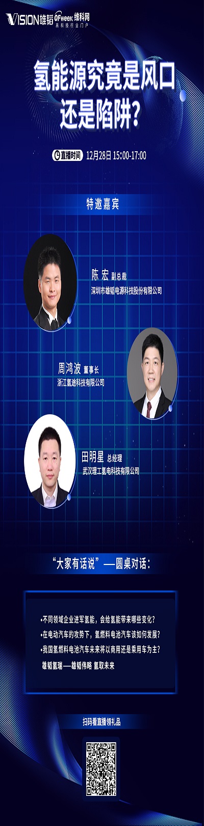 但是,当前氢燃料电池也存在成本高企、配套设施欠缺、技术不够成熟等痛点。这一背景下,由专注于氢能电堆研发与生产的雄韬氢瑞主办,OFweek维科网氢能承办的“中国氢能发展研讨会”,将于2021年12月28日在OFweek在线直播平台举办。