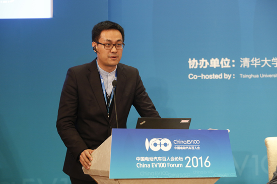 图为中兴新能源汽车有限责任公司副总经理田锋发表主题演讲