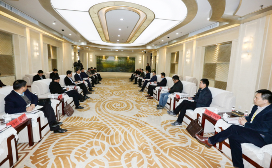 2月15日下午,浙江省长兴县工业经济和科技创新大会闭幕第二天,长兴县委书记吕志良、县长周卫兵带队来到超威集团,助推企业开门红。超威集团董事长周明明、总裁杨新新及部分高管出席座谈会。