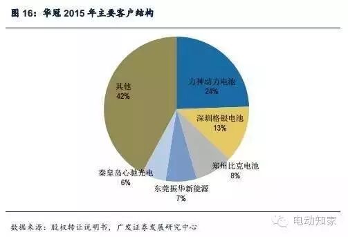 华冠电子之前主营电容器生产设备,近几年实施业务战略转型,锂电池设备业务占比从2014年的75%上升至2016年一季度的96%。其中随着制片卷绕一体机的研发成功今年开始投放市场,一季度收入占比已经达到64%,由于一体机毛利率明显高于单独出售制片机和卷绕机,公司锂电设备盈利能力得到明显提升。根据股权转让说明书,公司制片机和卷绕机毛利率约30%和35%,而一体机毛利率达到48%。锂电设备整体毛利率达到45%。