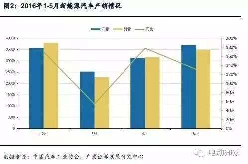 此轮整合的大背景是锂电设备下游需求持续高景气。锂电设备行业的景气度与和新能源产业的需求水平高度相关,特别是新能源汽车动力锂电池的增量需求,为锂电设备企业提供了广阔的扩产空间。根据中国汽车工业协会最新的统计,2016年5月新能源汽车生产3.7万辆,销售3.5万辆,同比分别增长131.3%和128.0%,前5个月累计产销量分别为13.2万辆和12.6万辆,同比增长130%以上。