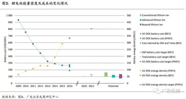 新能源汽车的发展极大的促进了锂电池产业的繁荣。随着锂电池行业研发生产的大量投入,锂电池的能量密度不断提高,同时成本也得到了有效的控制。预计未来锂电池的能量密度会达到400Wh/L,同时成本控制在100-150USD/kWh。