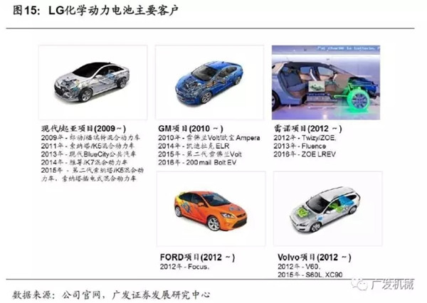 2009年,LG化学正式进入动力电池市场,与韩国现代起亚合作,首次将锂电池产品应用于商用混合动力车。此后,LG化学先后和通用、雷诺、福特、沃尔沃等国际定将厂商展开合作,成为动力电池主流三大供应厂商之一。