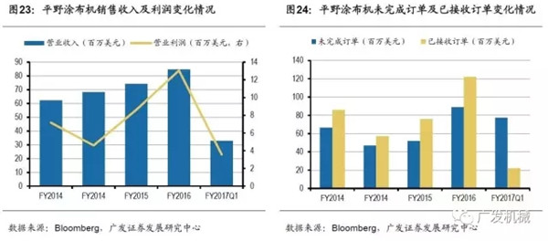 近年来,受益动力电池行业景气度高涨,平野涂布机业务营业收入逐年攀升,FY2017年涂布机营业收入8470万美元,同比增长14%,营业利润1306万美元,同比增长51.4%。此外,动力电池企业持续扩产,平野涂布机在手订单充裕。