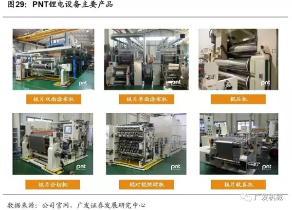 日韩装备制造企业起步较早,积累了较好的技术优势,因此,日韩涌现出一批自动化程度高、稳定性好以及高精密度的优质锂电设备企业。日本平野长期从事涂布机械的生产,受益国内锂电行业发展,公司在手订单充裕;CKD是日本卷绕机行业的领先企业,产品具有高精度、高卷绕速度、彻底防尘的特点;日本浅田是生产锂电制造前端搅拌设备的老牌企业,竞争优势明显;PNT是韩国最负盛名的生产涂布机、辊压机、分条机、卷绕机的公司备,主要客户包括三星SDI、LG化学、LGE、SKInnovation、以及CheilInd等知名企业;韩国CIS经过多年发展,可以生产从极片制作、电池单元(电芯)制作和电池组装各个工段所需要的各种设备,是锂电设备的综合服务供应商,为扩展中国市场,2015年与浩能科技合资创办了智慧易德,强化技术和市场的合作。