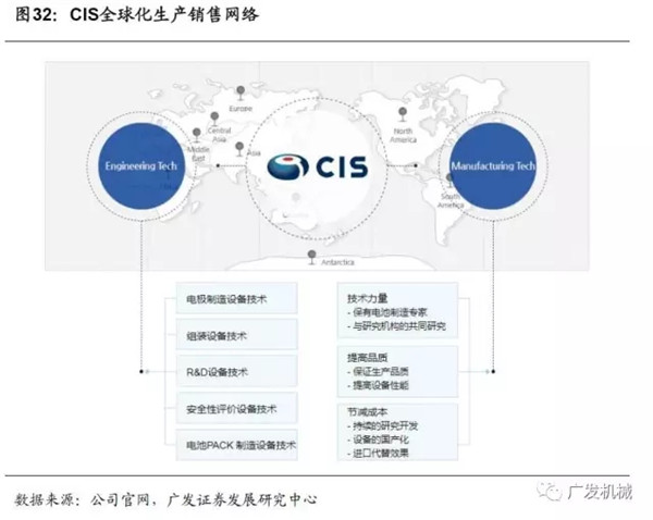 CIS成立于2002年的韩国公司。其主营业务为生产、销售锂离子电池制造设备、燃料电池制造设备、太阳能电池制造设备以及显示器制造设备。CIS公司是锂电设备的集大成者,生产从极片制作、电池单元(电芯)制作和电池组装各个工段所需要的各种设备,并且在技术上具备一定的优势。2015年6月,浩能科技与CIS合资创办了智慧易德,并将其打造成浩能科技和CIS进行技术和市场合作的中间业务平台。