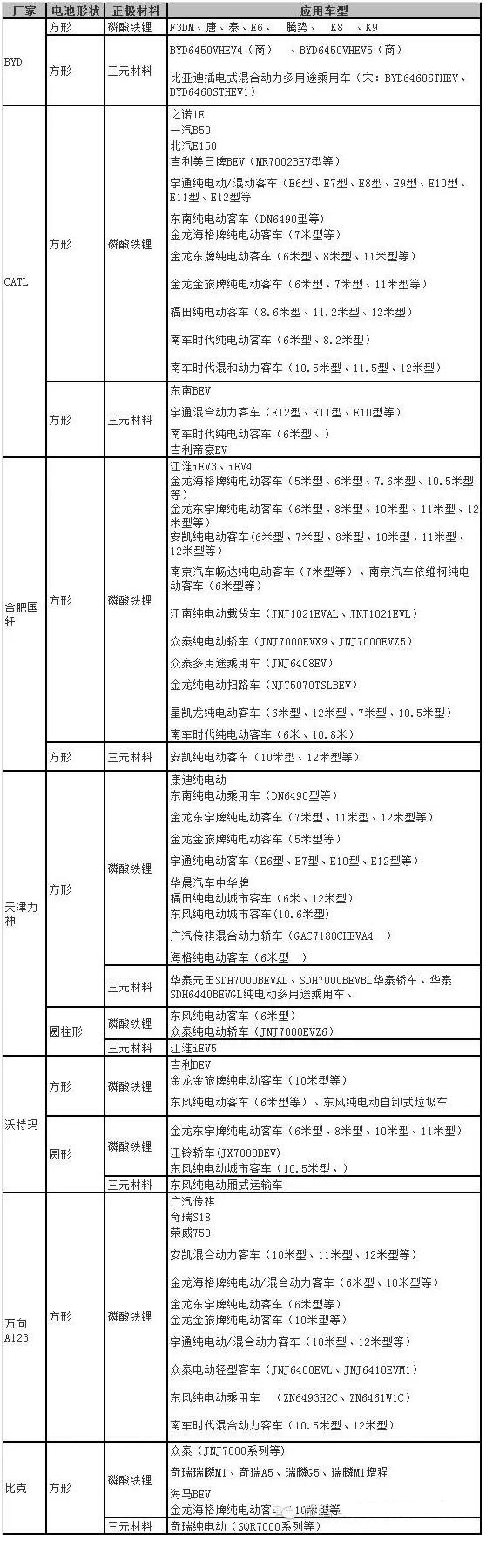 以2014年和2015年国内主流动力电池企业的产品类型以及与整车企业的关系,整理了下面这张表,可以大体看出国内动力电池企业的产品布局,客户关系和行业地位: