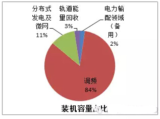 飞轮储能在不同应用领域中开展项目的装机容量占比