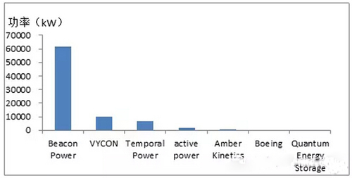 市场已经启动,那么飞轮产品供应商都有哪些呢?根据中关村储能产业技术联盟(CNESA)的项目数据库,自2010年以来,参与上述项目的企业主要有Beacon Power、VYCON、Temporal Power、Active Power、Amber Kinetics、Boeing、Quantum Energy。其中: