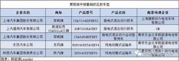 根据公开资料显示,被撤销五款的车型中,上汽通用凯迪拉克牌、上汽荣威以及东风牌纯电动厢式运输车配套的动力电池来自于GM、南京乐金化学新能源电池有限公司以及上海捷新动力电池系统有限公司。(见下表)