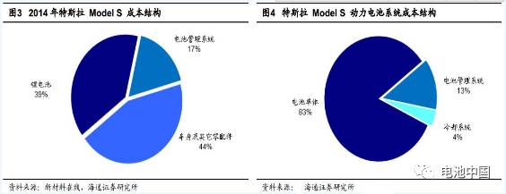 电池系统是电动车的动力来源,是整个产业链中最核心的系统成分。以特斯拉ModelS为例,其电池系统(锂电池+电池管理系统)成本占比为56%,而传统的轿车发动机占比大约只有15%-25%。到了2016年,电池系统的成本占比有所下降,且成本结构也有所变化,单体电池的成本占到了83%,电池管理系统的成本占比约为13%,剩余4%为电池冷却系统。