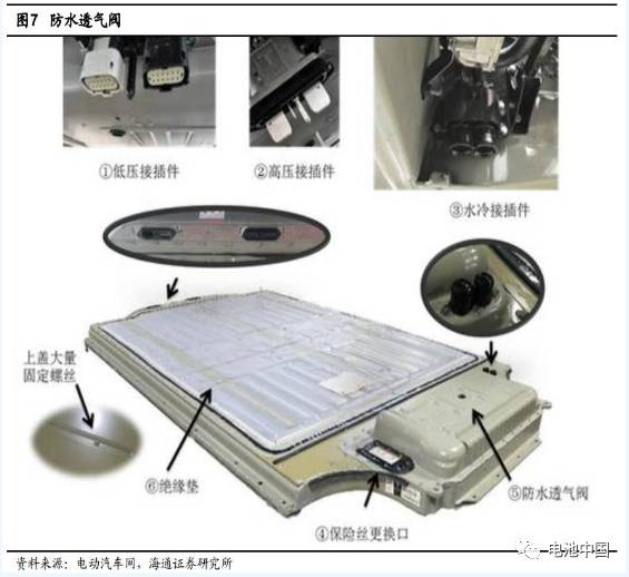 为了保护电池组,特斯拉在电池组前部顶面上设计了防水透气阀,利用气体分子与液体及灰尘颗粒的体积大小数量级之差,让气体分子通过,而液体、灰尘无法通过,从而实现防水透气的目的,避免水蒸气在电池组内部凝结。
