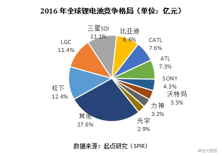 2016年第一名的松下增长15%,第二名的LG增长18%,第三名的三星SDI增长11.4%