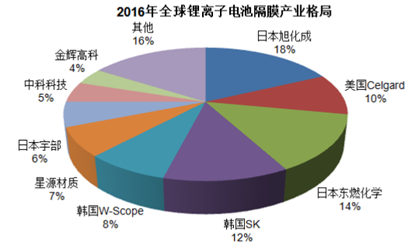 8年过去了,下图是2016年的全球锂离子电池隔膜的的产业格局(实际是2015年的数据)