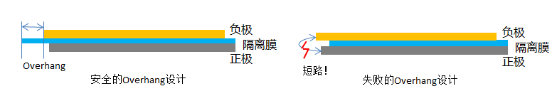 Overhang,是指隔离膜多出正负极极片之外的部分,一般会根据电池极片的宽度加上相应的设计余量来规定。Overhang的设计要考虑电芯制造过程和使用过程中隔离膜的尺寸变化。