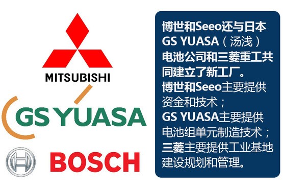 德国汽车零部件巨头博世(BOSCH),2015年收购美国电池公司“Seeo”。 博世和Seeo然后与日本著名的GS YUASA(汤浅)电池公司和三菱重工共同建立了新工厂,主攻固态阳极锂离子电池。