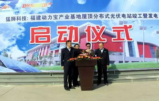2015年12月31日,猛狮科技福建动力宝产业基地屋顶分布式光伏电站竣工并正式投入运行,猛狮科技副董事长赖其聪、副总裁王亚波、李青海,福建动力宝总经理周锡方等出席启动仪式。