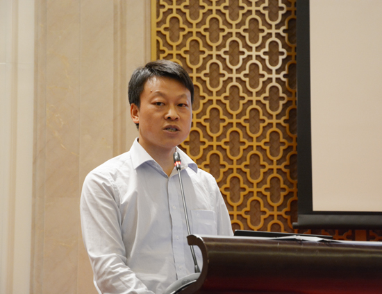 图为合肥国轩高科动力能源公司工程研究院常务副院长杨续来正在做主题演讲