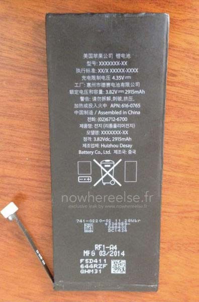 法国网站Nowhereelse.fr今日放出新图,声称这是一块来自5.5英寸iPhone 6的电池,图中显示电池容量为2915mAh,这一容量与上个月《Apple Daily》给出的消息一致。