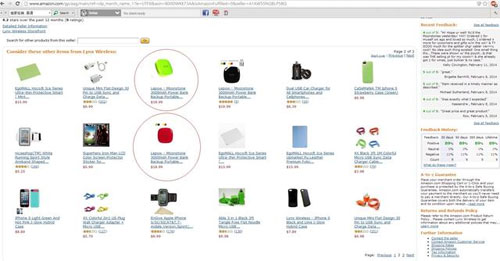 美国亚马逊网站上也有乐泡移动电源的假货。(乐泡提供)