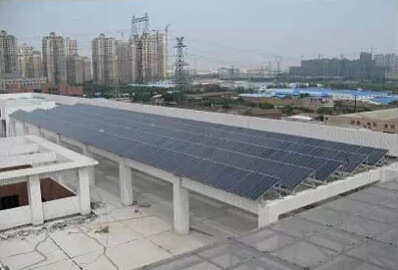 1)水平屋顶:在水平屋顶上,光伏阵列可以按最佳角度安装,从而获得最大发电量;并且可采用常规晶硅光伏组件,减少组件投资成本,往往经济性相对较好。但是这种安装方式的美观性一般。