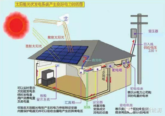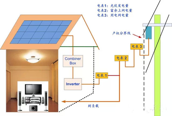 4)用户从电网取电则同没有装光伏系统时一样,根据用户电表缴费。
