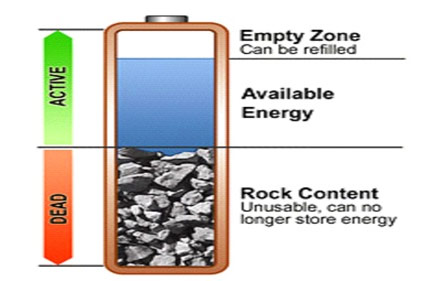 电池的能量存储可以分为三个虚拟区域,即可填充的空白区、提供能量的可用区以及由于使用和老化作用造成的闲置不可用区域,或者说是岩石区,如图1所示。