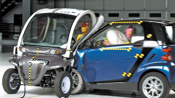 IIHS对低速电动车与乘用车Smart Fortwo的碰撞测试