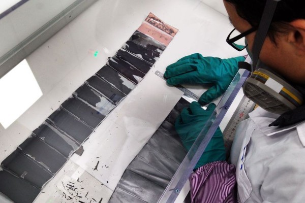 三星电池安全流程之一,就是打开电池然后观察每个组件。这个过程将会评估整体质量,包括电池标签焊接和绝缘胶带的使用情况。