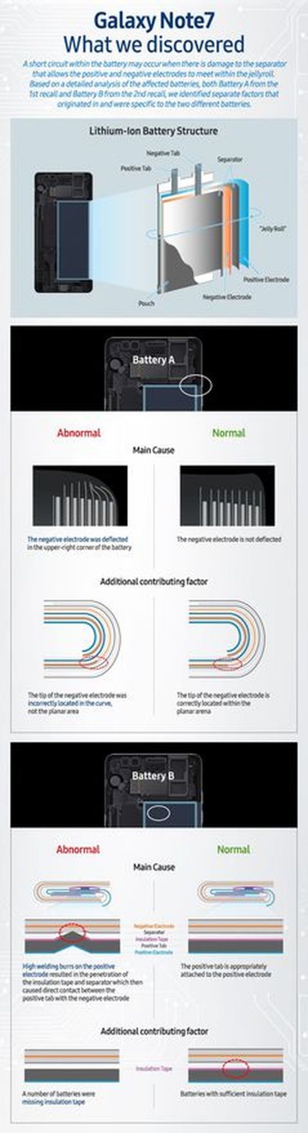 Battery B同样也有一些生产隐患。当时这家供应商需要增加产量来满足三星的需求,但在这个过程中出现了某些错误,导致电池存在短路问题。