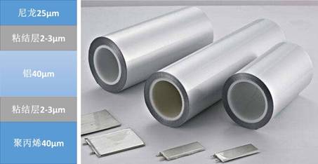 干法和热法工艺是铝塑膜主要采用的生产工艺。干法工艺是铝和聚丙烯用粘合剂粘结后直接压合而成,热法工艺是铝和聚丙烯之间用MPP接着,在缓慢升温升压热压合而成。
