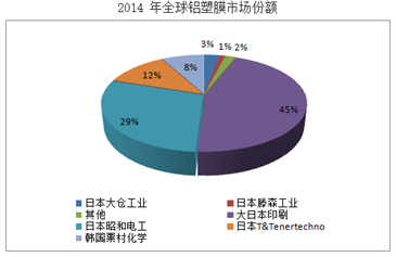 在软包锂电池中铝塑膜起到关键的作用,一般占到电芯成本的15-20%左右。然而国内由于技术的不足,铝塑膜市场占比非常少,占比不足5%。目前国内铝塑膜市场90%份额被日本厂商垄断,主要是DNP(大日本印刷)、昭和电工和T&T占据。