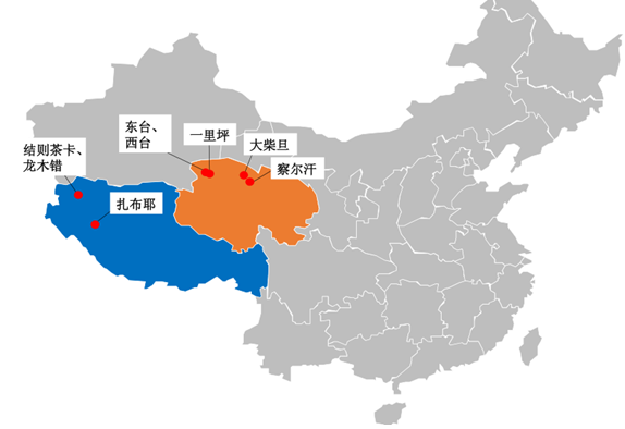 中国盐湖主要分布在青海和西藏。目前我国拥有 1500 多个盐湖,主要分布在青海和西藏。其中已开发碳酸锂资源的为青海的察尔汗盐湖、一里坪盐湖、东台吉乃尔盐湖、西台吉乃尔盐湖、大柴旦盐湖,以及西藏的扎布耶盐湖、西藏阿里地区的结则茶卡盐湖和龙木错盐湖。各个盐湖的储量不同,其中以察尔汗盐湖为首,储量约 718 万吨碳酸锂,其次为西藏的扎布耶盐湖,储量约 217 万吨碳酸锂。