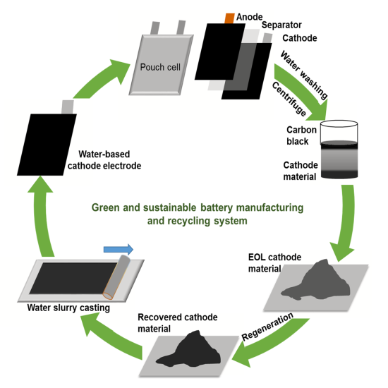 研究人员发现,通过水基工艺制造的电极与传统基于溶剂工艺制造的电极的速率性能和循环寿命相当。利用水溶性粘合剂能够利用水,从废电极中回收阴极化合物,成功再生此类化合物后,新电极与原始电极电化学性能相当。