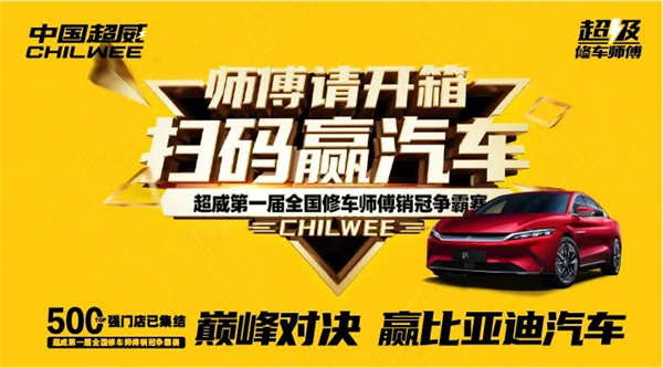 7月17日至8月16日期间,超威举办了「师傅请开箱,扫码赢汽车」第一届全国修车师傅销冠争霸赛,活动面向全国电动车及维修门店,通过超威积分商城平台开展能量值大比拼,根据最终排名情况角逐出了中国最强门店TOP500,并为其颁发荣誉奖牌,全国前三强门店各奖励比亚迪新能源汽车一辆。