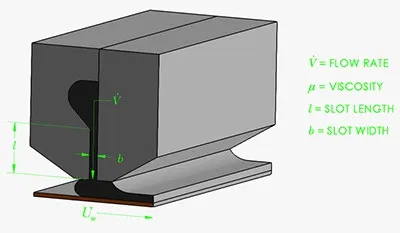 由以上公式可知,模头上下模之间的狭缝间隙b是模头出口浆料体积流量的三次方变量,当这个变量稍微发生变化时,可能就会对涂布结果产生很大的影响。因此,涂布模头的狭缝间隙又是整个模头的关键,涂布时浆料不断流经唇口,从狭缝喷出,唇口的性能指标会直接影响涂布效果。根据锂离子电池涂布的特点,挤压模头狭缝唇口应该满足以下要求: