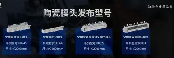 以上介绍了陶瓷模头全陶瓷材料、高耐磨、高硬度、耐腐蚀、抗变形、抗冲击等亮点。针对行业的需求,他们优先推出了4个系列全陶瓷涂布模头产品,全陶瓷手动千分尺调节系列模头、全陶瓷电动执行机构闭环调节系列模头,全陶瓷双层上下层手动千分尺调节系列模头、全陶瓷双层上下层电动执行机构调节系列模头,可以匹配涂布机安装使用,模头长度2米以下均可生产。