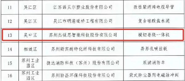 杰锐思“苏州制造”产品入选江苏省首台(套)重大技术装备