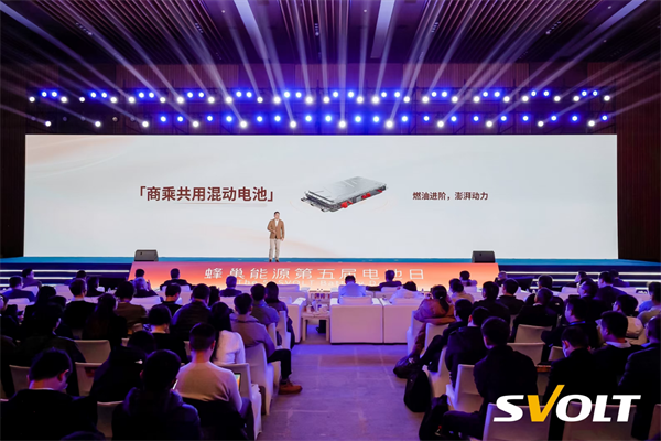 HEV方面,本届电池日蜂巢能源推出了商乘共用混动电池包产品,单包电量13 kWh,峰值放电功率360kW,系统循环寿命高达35000次,极大提升了用户燃油经济性和绿色低碳化发展。