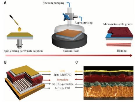 1.真空闪蒸辅助溶液合成的高效率大面积钙钛矿太阳能电池薄膜(Science DOI:10.1126/science.aaf8060)
