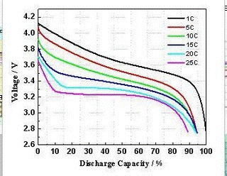 上图是三元材料的不同电流倍率的放电图,这个1C就是前面提到的1I1(A),也就是1倍的电流倍率,5C就是5I1(A),也就是5倍的电流倍率。