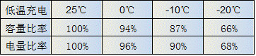 从常温25度到-20度,放出的电量降低30%。低温下充电也一样,电池能充进去的电量也会降低,厂家为确保低温下安全充电,往往会降低充电电流,这样,充电时间难免变长。