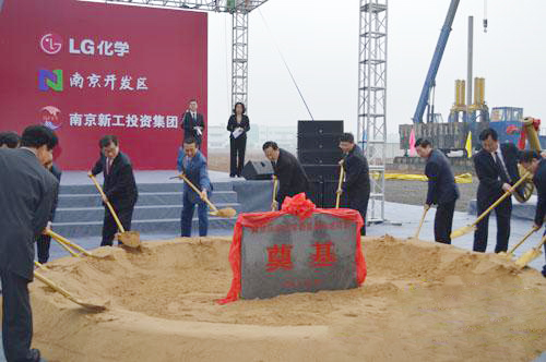 2015年10月27日,LG化学南京新能源电池项目竣工典礼召开。该项目可年产供5万多辆纯电动汽车(以一次充电续航里程达320公里的电动车为准)和18万多辆插电式混合动力版汽车(PHEV)使用的电池,并且采用“一条龙”生产模式。该工厂已吸引上海汽车、东风汽车、第一汽车等中国主流汽车制造商为其客户,且从其他16家汽车制造商获得电池订单。
