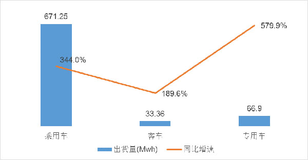 三元材料电池由于具有电压平台高、能量密度高、振实密度高、电化学稳定、循环性能好等特性,在提升新能源汽车的续航里程,减轻用户续航里程忧虑方面具有明显优势,同时还具有放电电压高,输出功率比较大,低温性能好,可适应全天候气温等优点,因此正逐渐受到汽车生产厂商和用户的青睐。根据统计,2016年1-4月三元锂电池在乘用车、客车和专用车中的搭载量均实现了快速增长,同比增速分别达到344.0%、189.6%和579.9%。