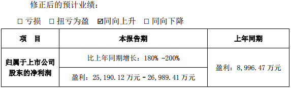 沧州明珠7月12日晚间发布2016年半年度业绩预告修正公告,半年报预增幅度由原140%-180%,上修为180%-200%,盈利预计为25190.12万元-26989.41万元。