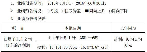 天齐锂业此前在一季报中预计2016年半年度实现净利润为60,000万元至65,000万元,较上年同期增长1,364.25%至1,486.27%。