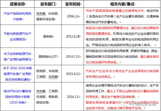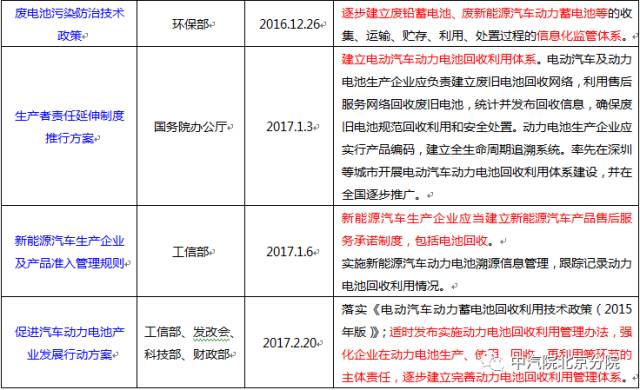 从上表可以看出,车用动力电池回收政策逐步完善,已经明确了动力电池回收责任主体,并在多项政策中强调了“生产者责任延伸制度”,但在落实方面仍存在一定困难。