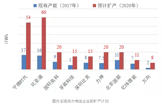 龙头企业正面临电池供不应求、高端产能不足的态势。宁德时代在其招股说明书中指出“现有产能无法满足潜在市场需求”,并拟将60%以上的募集资金用以产能扩张;比亚迪在2017年度股东大会上说明已经出现动力电池供应不足的缺口,并加紧对磷酸铁锂动力电池产线和青海动力电池产线的扩产。