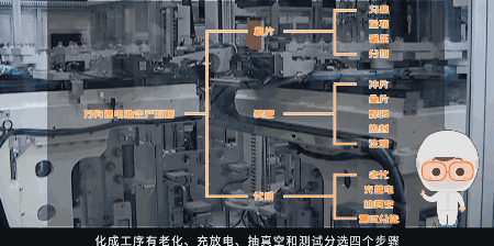 化成工序有老化、充放电、抽真空和测试分选四个步骤。